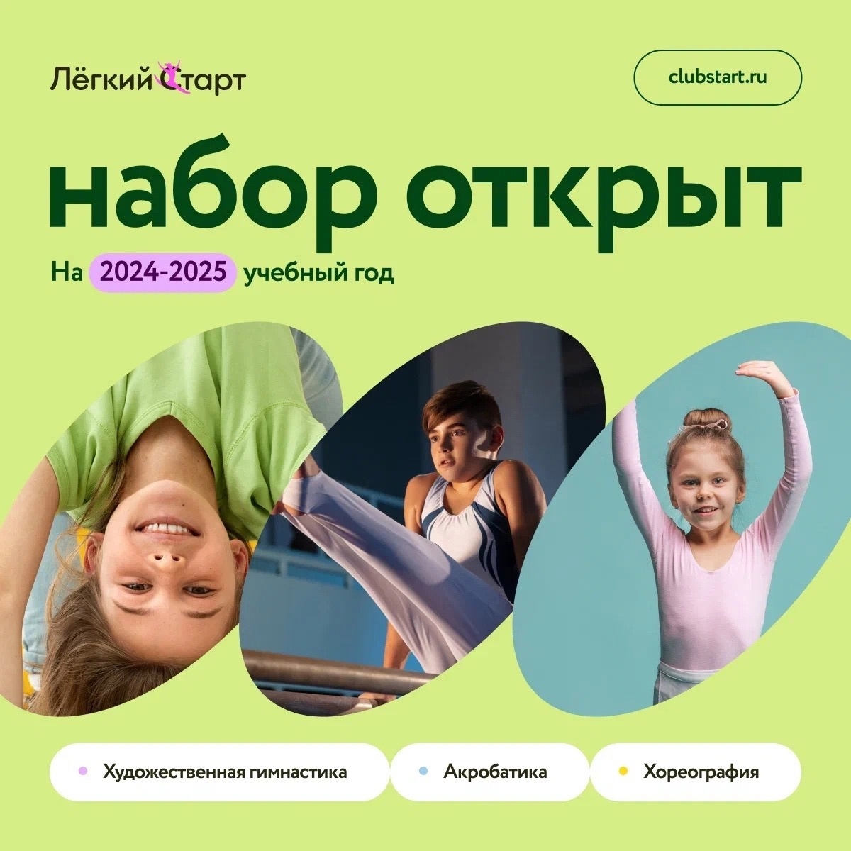 Это клуб художественной гимнастики и акробатики для детей от 3 до 12 лет.